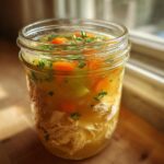 A simple and nutritious homemade chicken soup that’s perfect for canning and storing for later use.
